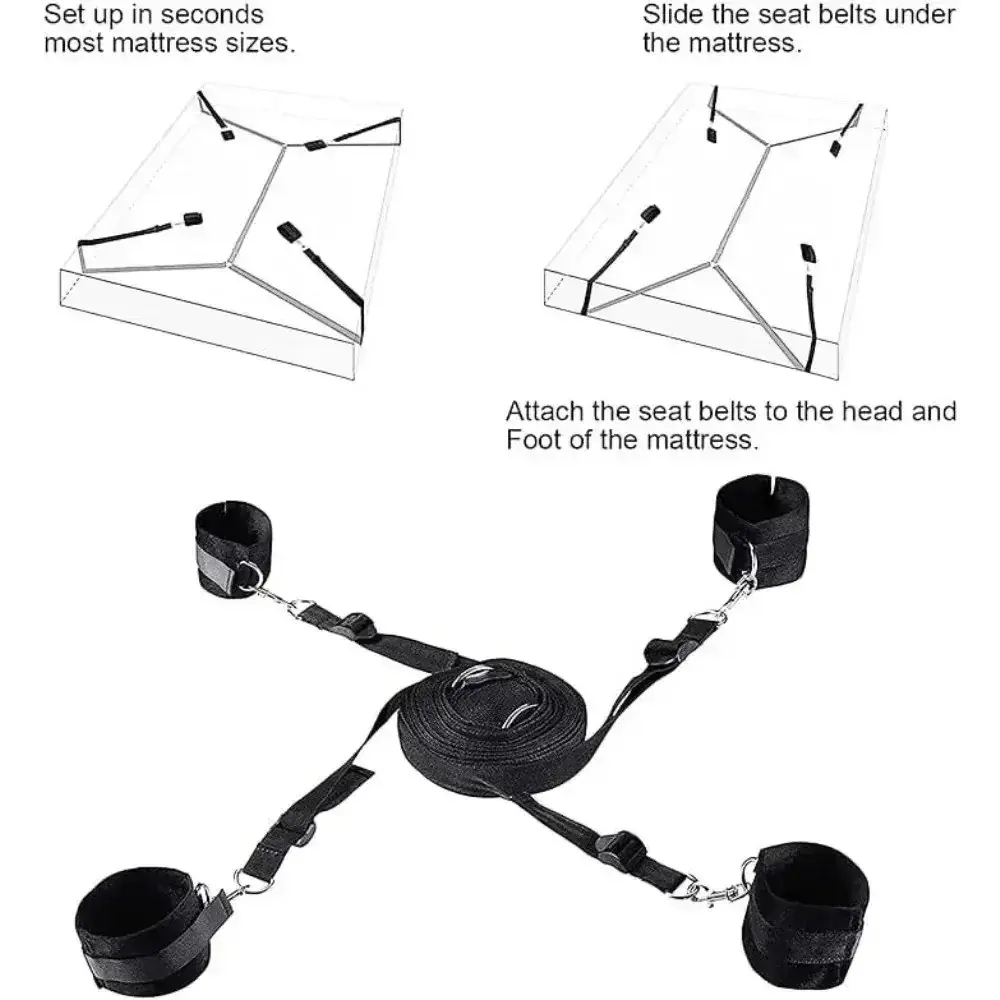 • 1 x Bed Bondage Restraint Kit – Adjustable Nylon Handcuffs