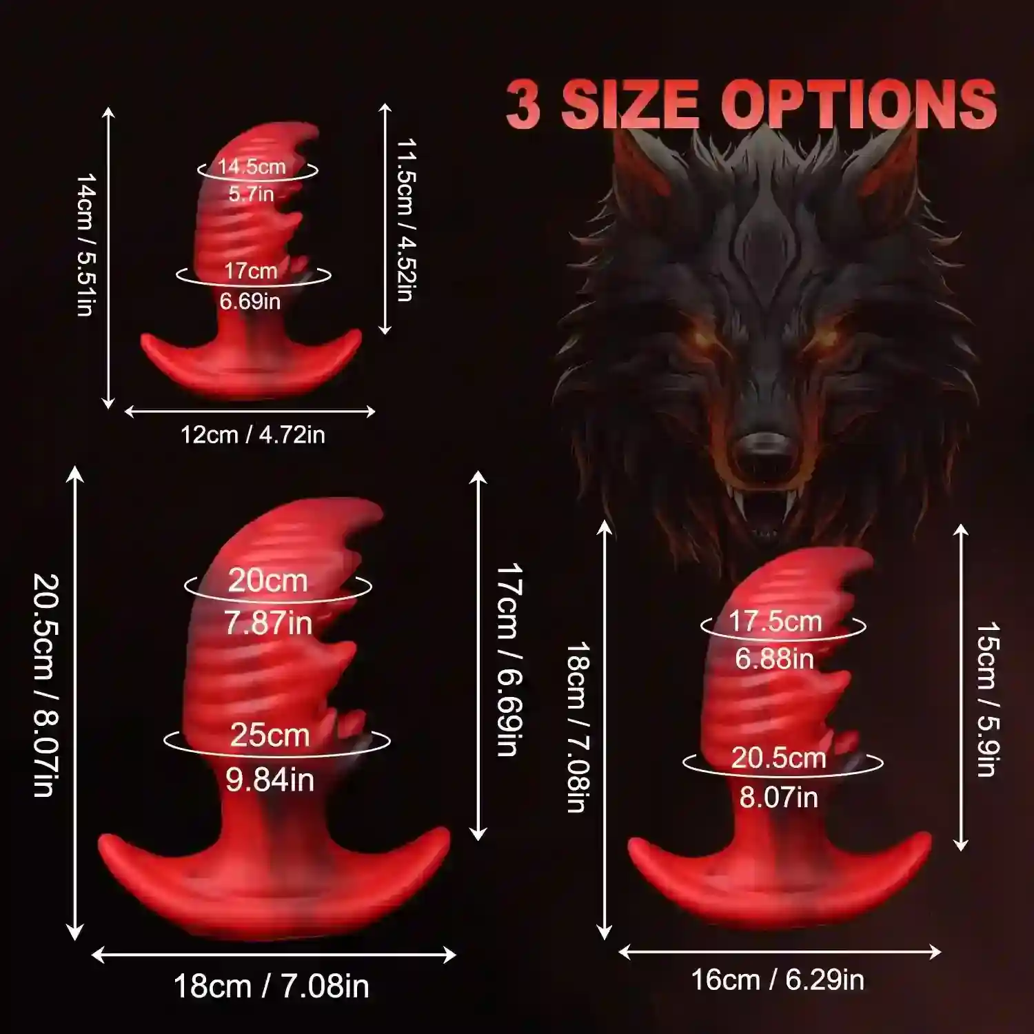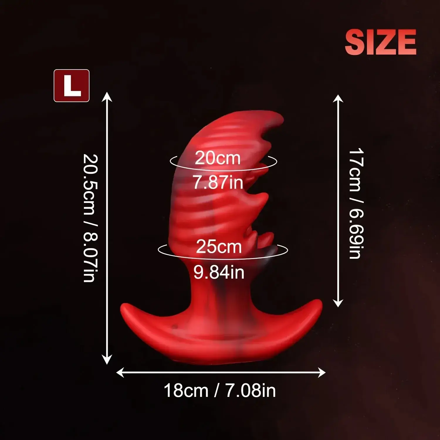 - Size (Large): Length: 7.87″ (20cm), Insertable Length: 9.84″ (25cm), Widest Diameter: 7.08″ (18cm)