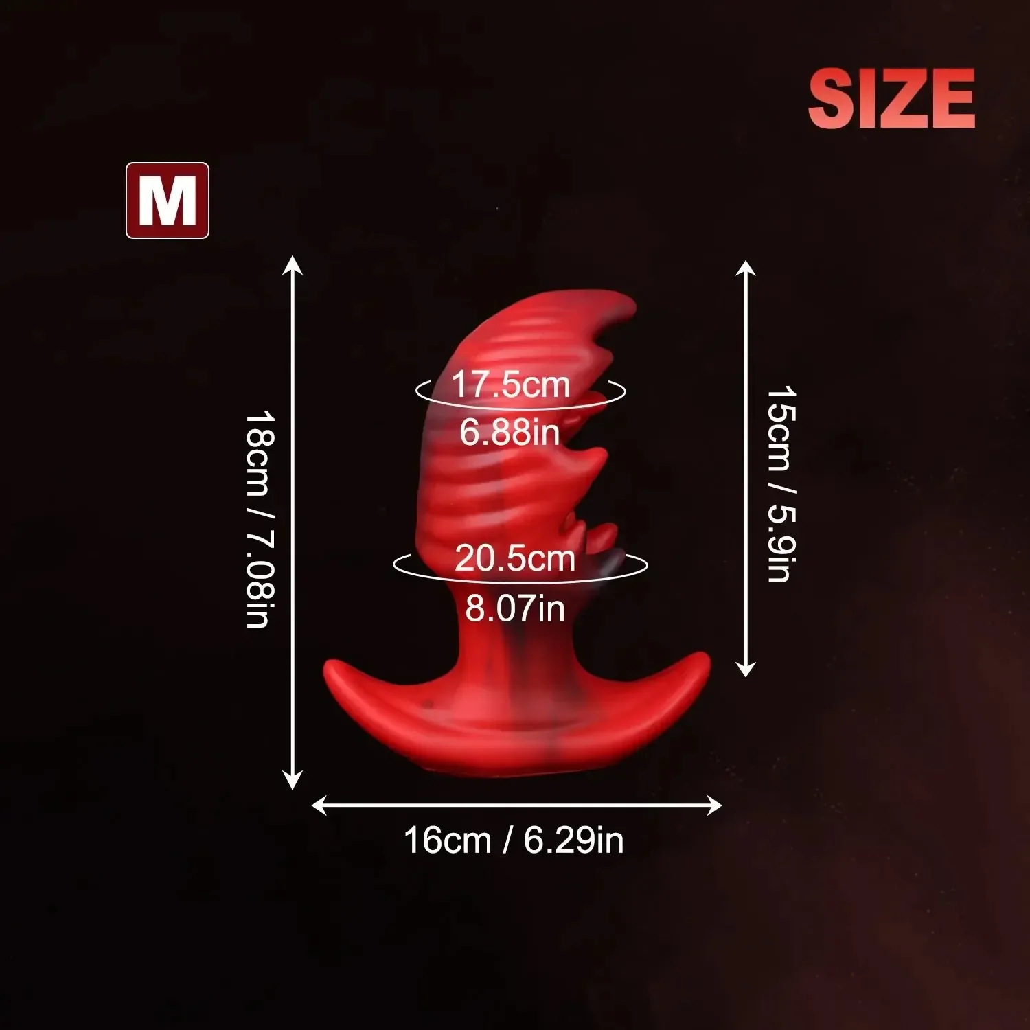 - Size (Medium): Length: 6.88″ (17.5cm), Insertable Length: 8.07″ (20.5cm), Widest Diameter: 6.29″ (16cm)