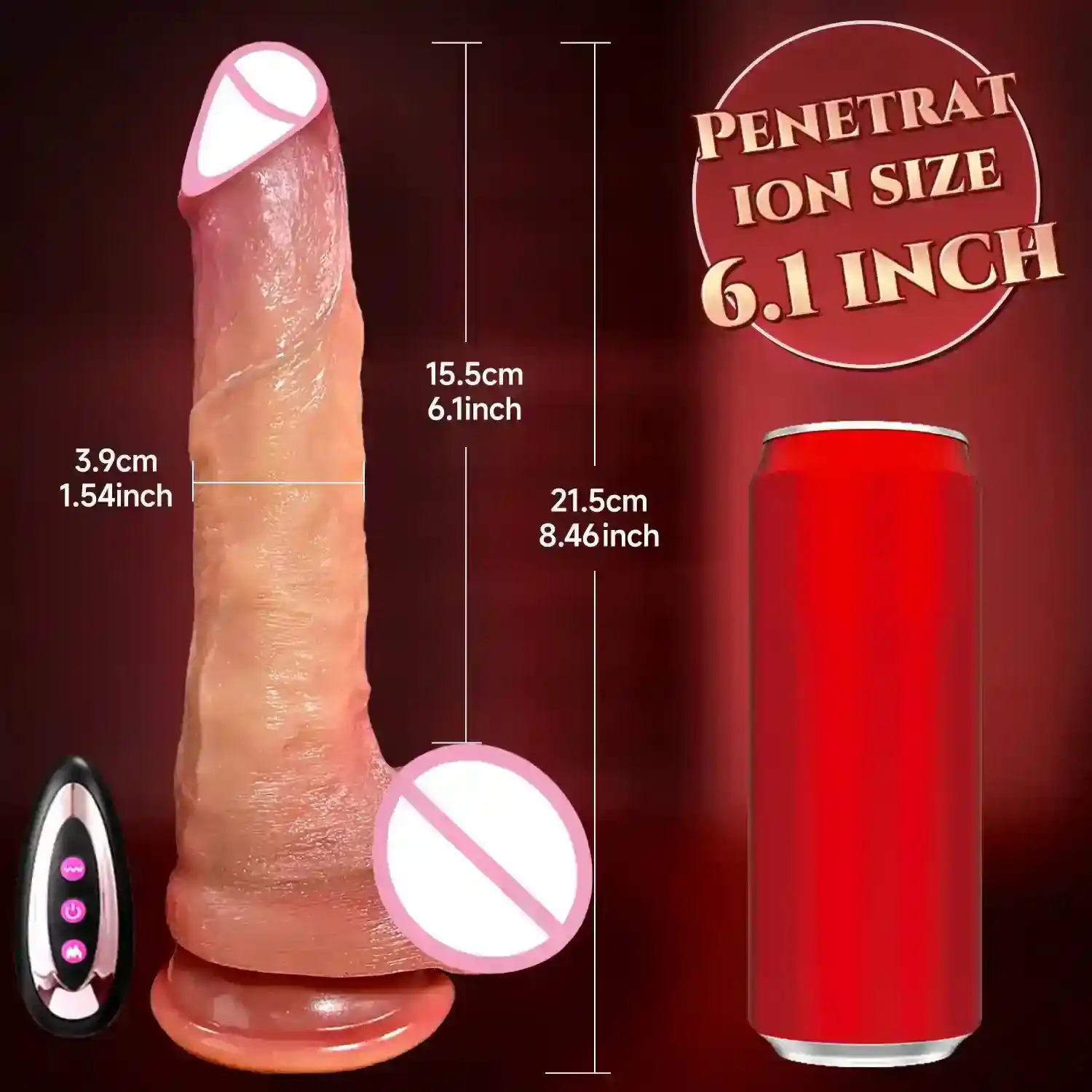 - Size: Total Length: 8.46 Inches (21.5cm), Insertable Length: 6.1 Inches (15.5cm), Diameter: 1.7 Inches (4.5cm)