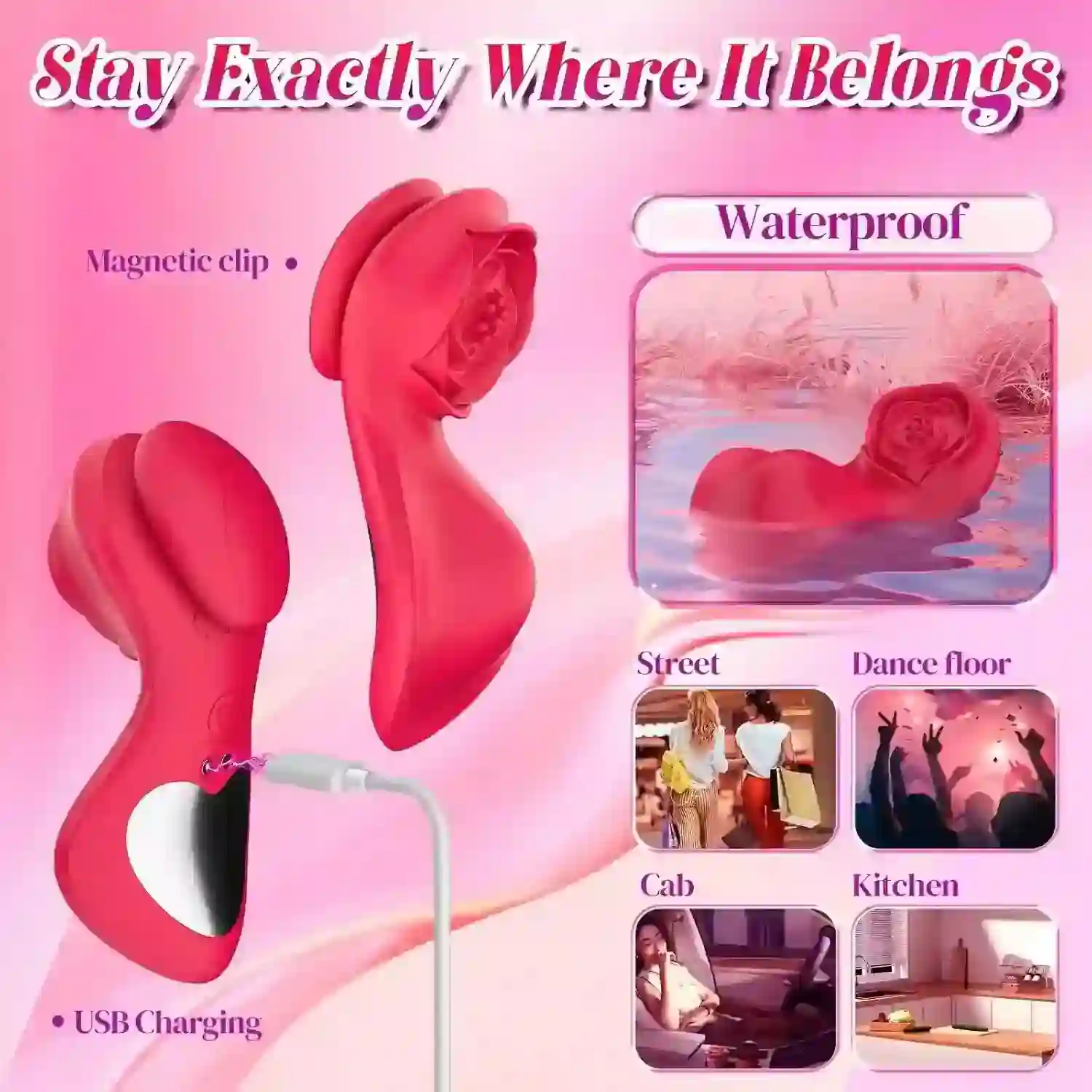 - Secure Magnetic Attachment: The innovative magnetic clip ensures the Rose Vibrator stays perfectly in place, delivering consistent and focused stimulation without interruption.